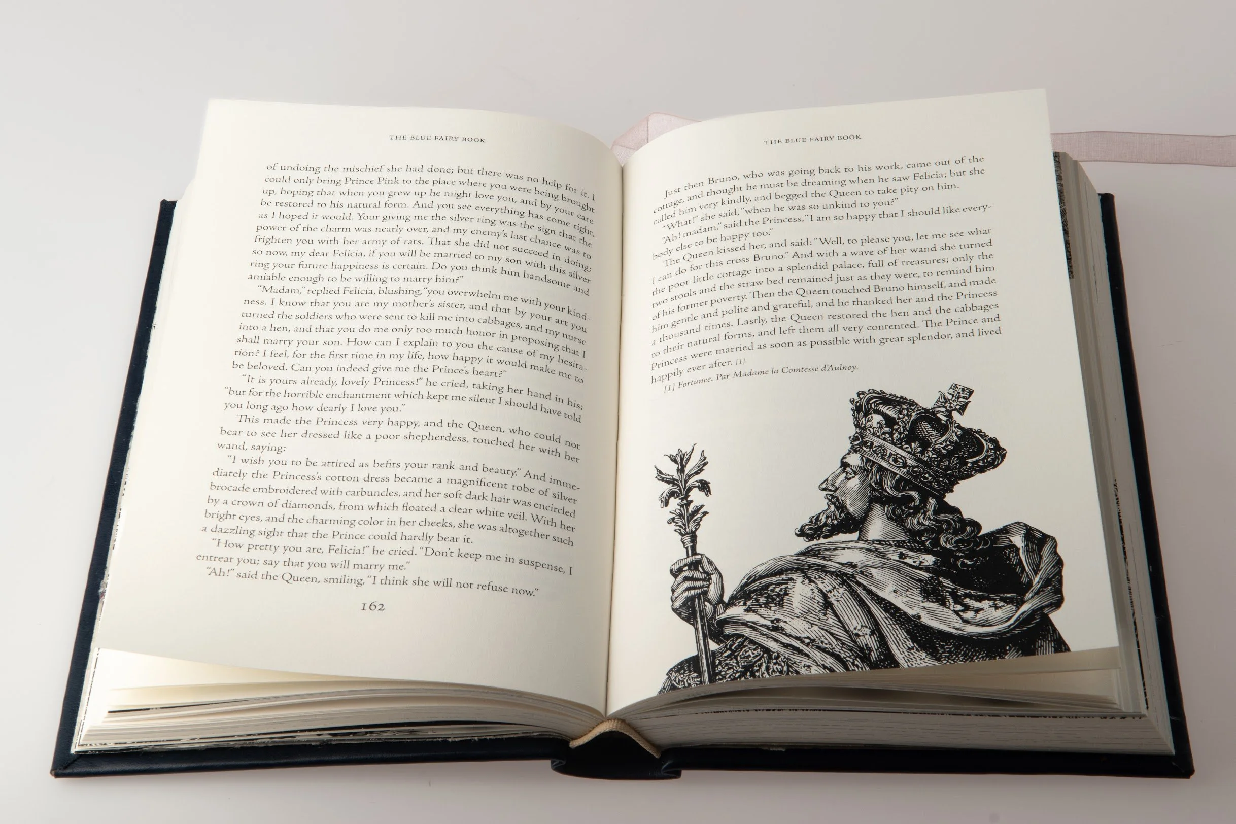 I added a bookmark ribbon with young readers in mind. It feels playful and it makes it easy for a younger reader to return to where they left off. The illustrations were sourced from Adobe Stock as well as from the work of H. J. Ford and G. P. Jacomb Hood. Their detailed, narrative-driven styles enhance the storytelling and align with the traditional, almost folkloric quality I wanted the edition to convey.